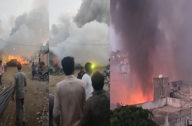 इंदौर में भयानक आग, कालका माता मंदिर के पास पटेल मार्केट में लगी आग के धमाकों से हिला इलाका