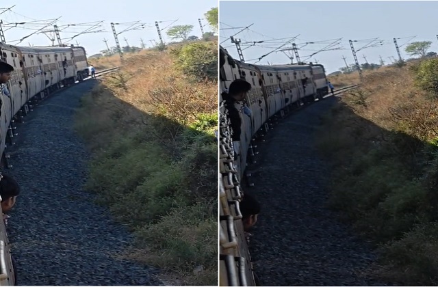 गुना (मिस्बाह नूर) : यात्रीगण कृपया ध्यान दें! सोशल मीडिया पर एक ऐसा अनोखा वीडियो वायरल हो रहा है, जिसने यात्रियों को हैरत में डाल दिया है और लोगों को खूब प्रतिक्रिया देने पर मजबूर कर दिया है। मामला ग्वालियर से गुना आ रही पैसेंजर ट्रेन का है, जहां कथित तौर पर ट्रेन के लोको पायलट ने अपनी प्राकृतिक पुकार को प्राथमिकता देते हुए चलती रेल लाइन पर ही ट्रेन रोक दी और सबके सामने लघुशंका करते हुए कैमरे में कैद हो गए। बताया जा रहा है कि यह घटना शुक्रवार दोपहर करीब 11 से 11:30 बजे के बीच की है। वीडियो में साफ देखा जा सकता है कि लोको पायलट महोदय ट्रेन के इंजन के ठीक सामने खड़े होकर लघुशंका कर रहे हैं, जबकि पीछे खड़ा उनका सह-पायलट इस दौरान बीच-बीच में हॉर्न बजा रहा है।