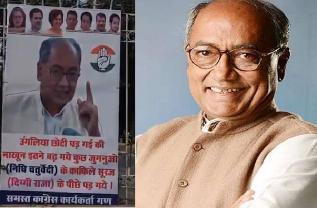 भोपाल : मध्यप्रदेश में पूर्व मुख्यमंत्री दिग्विजय सिंह द्वारा आरएसएस की तारीफ करने वाला मामला तूल पकड़ता जा रहा है। एक पोस्ट से शुरु हुआ विवाद अब कांग्रेस के भीतर ही बड़ा राजनीतिक मुद्दा बनता जा रहा है। मामले में दिग्विजय सिंह को भाजपा में शामिल होने का ऑफर मिला, वहीं कांग्रेस नेताओं ने उन्हें पार्टी से निष्कासित करने की मांग भी की। लेकिन इसी बीच भोपाल कार्यालय के बाहर लगे पोस्टर से हड़कंप मच गया है। यह पोस्टर पार्टी के वरिष्ठ नेता और पूर्व सांसद सत्यव्रत चतुर्वेदी की बेटी निधि चतुर्वेदी द्वारा लगाया गया है। जिससे पार्टी के अंदर चल रही गुटबाजी खुलकर सामने आ गई है।