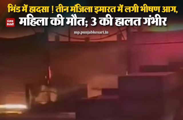 भिंड में हादसा ! तीन मंजिला इमारत में लगी भीषण आग, महिला की दम घुटने से मौत, 3 की हालत गंभीर ; लाखों का सामान जलकर राख