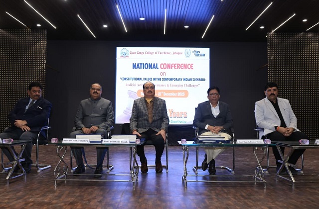 जबलपुर (विवेक तिवारी) : विधि के क्षेत्र में विद्यार्थियों को समग्र और विकसित ज्ञान प्रदान करने के लिए जबलपुर ने राष्ट्रीय स्तर की कार्यशाला आयोजित करके एक बड़ा कीर्तिमान रच दिया। इस कार्यशाला में 50 शोध पत्र प्रस्तुत किए गए जिससे विधि क्षेत्र के विद्यार्थियों को भविष्य में लीगल प्रोफेशन में आगे बढ़ने के लिए महत्वपूर्ण दिशा मिलेगी। इस राष्ट्रीय कार्यशाला का आयोजन ज्ञान गंगा कॉलेज ऑफ एक्सीलेंस, जबलपुर के तत्वावधान में किया गया। जहां “समकालीन भारतीय परिदृश्य में संवैधानिक मूल्य: न्यायिक सक्रियता, शासन व्यवस्था एवं उभरती चुनौतियां” विषय पर महामंथन किया गया। द्विदिवसीय राष्ट्रीय सम्मेलन का भव्य एवं सफल आयोजन महाविद्यालय के सभागार में संपन्न हुआ।