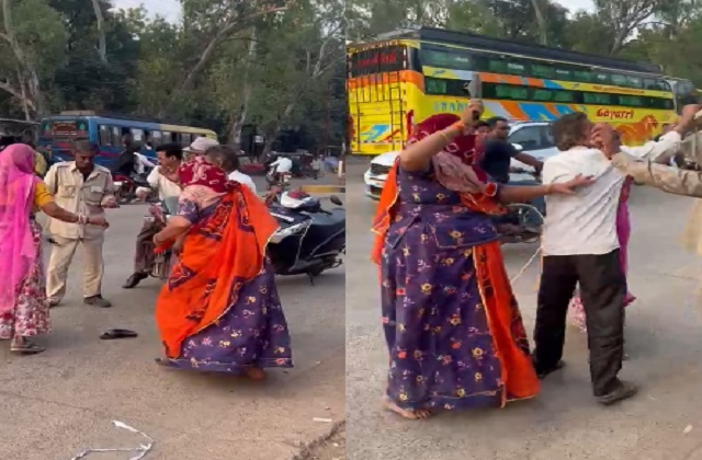 नीमच में सड़क बन गई जंग का मैदान, औरत और मर्द के बीच जमकर चले जूते, चप्पल, लोगों का लगा तांता