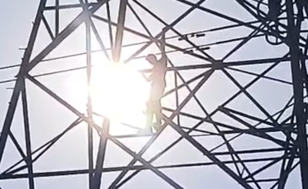 शोले फिल्म जैसा सीन! विवाद के बाद पत्नी को बुलाने की जिद में हाईटेंशन टावर पर चढ़ा युवक