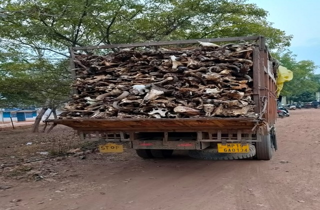 रीवा (गोविंद सिंह): रीवा सेमरिया में उस वक्त हड़कंप मच गया जब एक गाय की हड्डियों से लदा ट्रक देखकर सब सन्न रह गए। गाय की हड्डियों से लदे इस ट्रक को स्थानीय लोगों और बजरंग दल कार्यकर्ताओं ने रोक लिया।