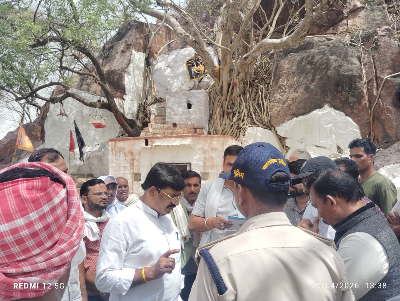 मौके पर जितेंद्र खटीक, लोकेंद्र कर्ण, जितेंद्र यादव (विक्की), राममिलन यादव, शिवम खटीक, शैलेन्द्र चतुर्वेदी, ब्रजेंद्र यादव, मलखान परिहार (सरपंच भरसूला), गोविंद दास चौरसिया, रमेश खटीक, मुरारी केवट, अमर सिंह यादव, विनोद केवट सहित सैकड़ों लोग पहुंचे। सभी ने घटना पर नाराजगी जताते हुए इसे धार्मिक भावनाओं को आहत करने वाला कृत्य बताया।