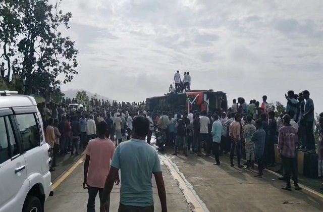 ये लोग ओंकारेश्वर से बड़वानी होते हुए महाराष्ट्र के प्रकाशा जा रहे थे। तभी खेतिया-पाटी रोड के घाट क्षेत्र में बस अनियंत्रित होकर पलट गई। बस में करीब 50 यात्री सवार थे। हादसे में एक महिला की मौके पर ही दबकर मौत हो गई, जबकि दो यात्री अभी भी बस में फंसे होने की सूचना है। पुलिस और राहत दल मौके पर मौजूद हैं, घायलों को बस से निकालने का काम जारी है।
