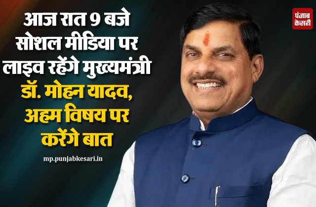 आज रात 9 बजे सोशल मीडिया पर लाइव रहेंगे मुख्यमंत्री डॉ. मोहन यादव, अहम विषय पर करेंगे बात