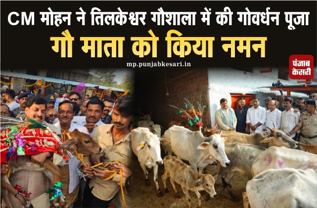 CM मोहन ने तिलकेश्वर गौशाला में की गोवर्धन पूजा गौ माता को किया नमन