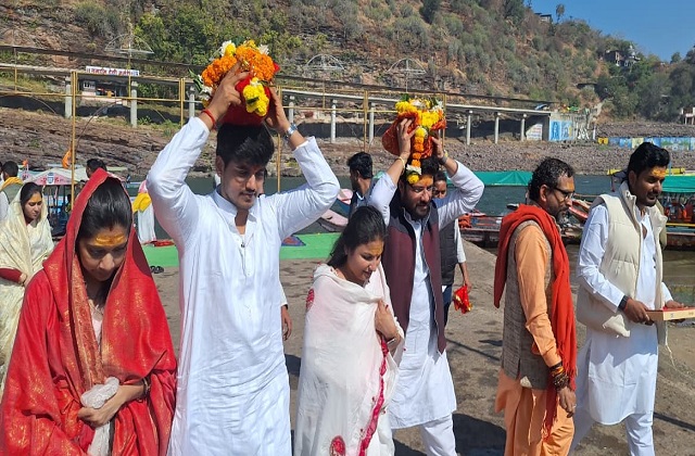 CM मोहन के नवविवाहित बेटा-बहू पहुंचे ओंकारेश्वर, मां नर्मदा की पावन परिक्रमा का लिया संकल्प,भक्ति में दिखे लीन