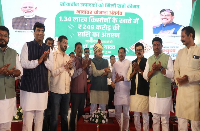 मुख्यमंत्री डॉ. यादव बुधवार को इंदौर जिले के गौतमपुरा में आयोजित समारोह को संबोधित कर रहे थे। मुख्यमंत्री डॉ. यादव ने सोयाबीन की फसल पर भावान्तर भुगतान योजना के तहत प्रदेश के 1.34 लाख पात्र किसानों के बैंक खातों में सिंगल क्लिक से 249 करोड़ रुपये अंतरित किये। अब तक प्रदेश के 4.39 लाख से अधिक किसानों द्वारा 7.85 लाख मीट्रिक टन सोयाबीन फसल का विक्रय किया जा चुका है।