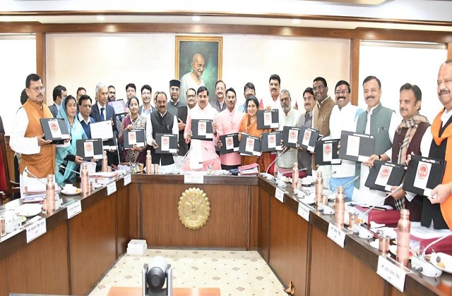 (भोपाल) : मुख्यमंत्री डॉ. मोहन यादव की अध्यक्षता में मंत्रि-परिषद की बैठक मंगलवार को मंत्रालय में हुई। मंत्रि-परिषद की बैठक में कई अहम निर्णय लिए गए हैं। बैठक में मुख्यमंत्री डॉ. यादव सहित मंत्रि-परिषद के सदस्य बैठक में टैबलेट के साथ शामिल हुए।