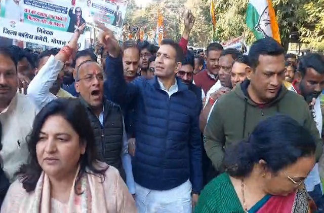 इसी सिलसिले मे भोपाल में कांग्रेस नेताओं और कार्यकर्ताओं ने BJP के ख़िलाफ़ विरोध प्रदर्शन किया है। भोपाल में हुए विरोध प्रदर्शन की अगुवाई कांग्रेस प्रदेशाध्यक्ष जीतू पटवारी ने की। जीतू पटवारी हाथ में तिरंगा लेकर BJP सरकार के ख़िलाफ़ हल्ला बोलते दिखे। जीतू ने कहा है कि हाईकोर्ट ने बीजेपी RSS और नरेंद्र मोदी की साजिश को आइना दिखा दिया है