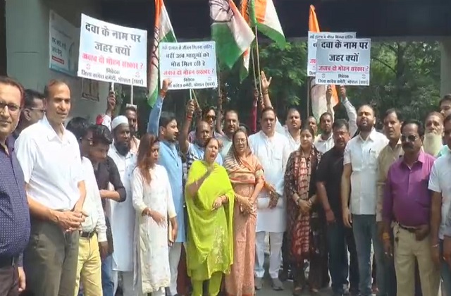 भोपाल (इजहार खान) : मध्य प्रदेश में जहरीले कफ सिरप से अब तक 26 बच्चों की मौत हो चुकी है जिस पर पूरे देश में चर्चा और सियासत हुई है। कफ सिरप को लेकर कांग्रेस ने भोपाल जिला अस्पताल के बाहर प्रदर्शन किया और उपमुख्यमंत्री राजेंद्र शुक्ला के इस्तीफा की मांग की। भोपाल कांग्रेस के जिला अध्यक्ष प्रवीण सक्सेना का कहना है कि कफ सिरप से 26 बच्चों की मौत हो चुकी लेकिन स्वास्थ्य मंत्री ने अभी तक इस्तीफा नहीं दिया है ना इस पर कोई जांच बैठाई है।