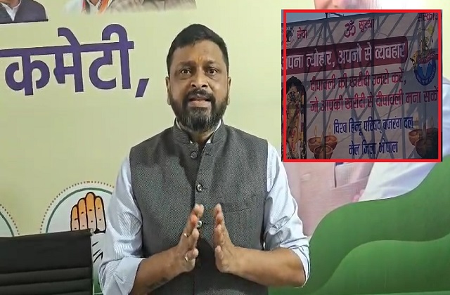 भोपाल (इजहार खान) : दीपावली से पहले भोपाल में लगे एक पोस्टर ने मध्य प्रदेश में घमासान मचा दिया है। विश्व हिंदू परिषद और बजरंग दल की तरफ से लगाए गए पोस्टर पर लिखा है कि दीपावली की खरीदी उनसे करें जो आपकी खरीदी से दिवाली त्योहार मना सके। वहीं इस मामले मे भाजपा विधायक ने भी अपनी प्रतिक्रिया दी है। वहीं कांग्रेस प्रवक्ता अभिनव बरोलिया ने पोस्टर को लेकर सवाल उठाए हैं और सरकार को घेरा है। उन्होंने सरकार से सवाल किया कि क्या वे इस पोस्टर से सहमत हैं अगर नहीं तो इसे लगाने वालों पर तुरंत कार्रवाई करें।