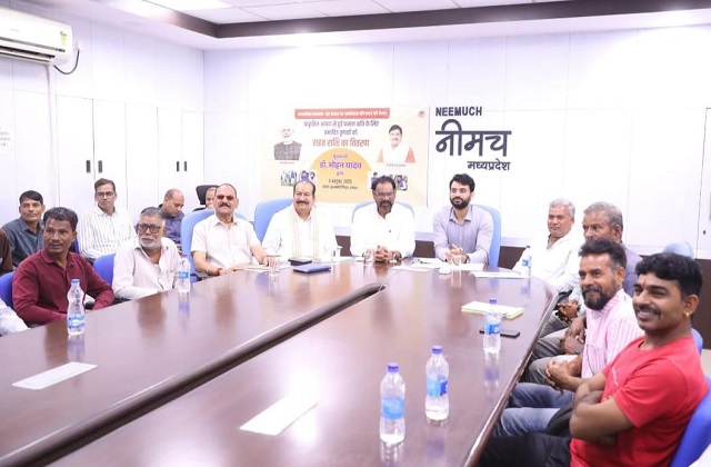 नीमच (मूलचंद खींची): मुख्यमंत्री मोहन यादव ने नीमच जिले के 592 ग्रामों के किसानों के चेहरे पर खुशी लाने का प्रयास किया है। अतिवृष्टि पीला मोजेक से फसलों को हुई क्षति पर आज आज 119.6 करोड़ रुपए की राहत राशि सिंगल क्लिक के माध्यम से किसानों के बैंक खाते मेंअंतरित की गई है।वीडियो कॉन्फ्रेंसिंग के माध्यम से आयोजित इस कार्यक्रम में नीमच के एनआईसी कक्ष में विधायक नीमच दिलीप सिंह परिहार, विधायक मनासा अनिरुद्ध मारू, जिला पंचायत अध्यक्ष सज्जन सिंह चौहान, कलेक्टर हिमांशु चंद्रा, एडीएम बीएस कलेश, वंदना खंडेलवाल के साथ ही जिले के किसान उपस्थित थे।
