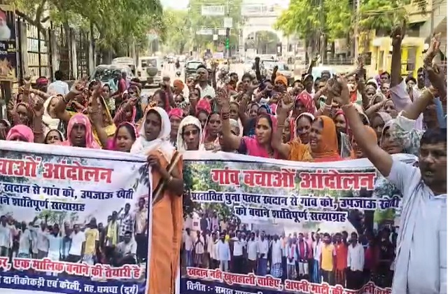 दुर्ग (हेमंत पाल) : दुर्ग जिले के धमधा ब्लॉक के ग्राम दानीकोकड़ी में प्रस्तावित चुना फैक्ट्री के खिलाफ ग्रामीणों का आक्रोश अब खुलकर सड़कों पर दिखाई देने लगा है। सोमवार को गांव के सैकड़ों ग्रामीण महिला, बुजुर्ग और बच्चों सहित जिला कलेक्टर कार्यालय पहुंचे और प्रशासन के खिलाफ जोरदार प्रदर्शन किया। कड़ी धूप के बावजूद ग्रामीण घंटों तक डटे रहे और अपनी मांगों को लेकर नारेबाजी करते रहे। ग्रामीणों का कहना है कि यह फैक्ट्री उनके जीवन और आजीविका पर सीधा असर डालेगी। उनका आरोप है कि बिना उनकी सहमति के इस तरह का औद्योगिक प्रोजेक्ट थोपना अन्यायपूर्ण है। गांव के लोगों ने साफ तौर पर कहा कि वे किसी भी स्थिति में अपनी जमीन नहीं छोड़ेंगे।