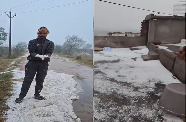 डबरा (भरत रावत) : डबरा भितरवार सहित ग्वालियर जिले के ग्रामीण अंचलों में सुबह-सुबह तेज़ बिजली गर्जना के साथ हुई मूसलाधार बारिश और भीषण ओलावृष्टि ने तबाही मचा दी। कई गांवों में खेत सफेद बर्फ की चादर जैसे ढक गए, जिससे नज़ारा कश्मीर की बर्फबारी जैसा दिखाई दिया। लेकिन इस सबके बीच किसानों को भारी नुकसान हुआ और उनके चेहरे पर मायूसी नजर आई।