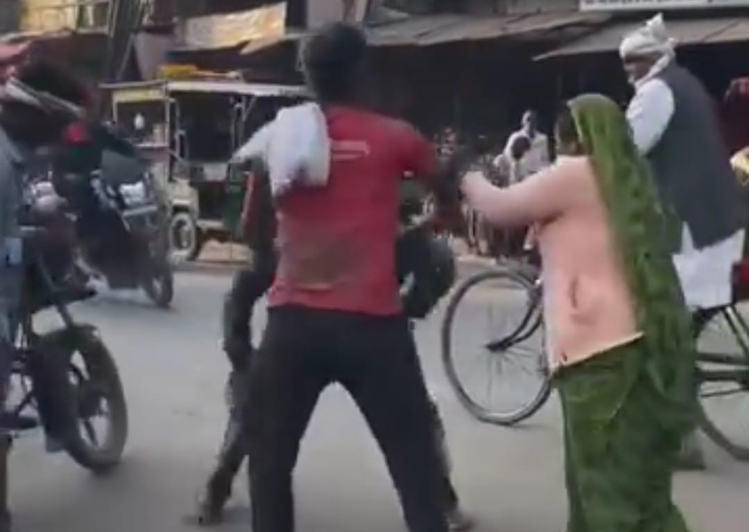 बीच सड़क पति-पत्नी में जमकर चले लात-घूंसे और मुक्के, हाईवोल्टेज ड्रामे का वीडियो वायरल