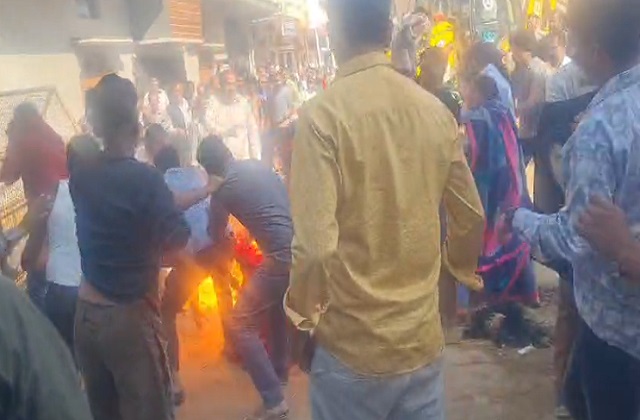 खातेगांव में भारी बवाल,अतिक्रमण हटाने के विवाद में पति-पत्नी ने खुद पर पेट्रोल डाल लगाई आग, गुस्साई भीड़ बेकाबू