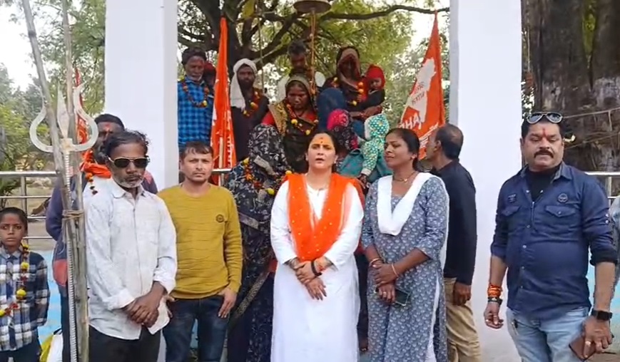 जबलपुर: जबलपुर के खमरिया थाना क्षेत्र स्थित शिव मंदिर में मंगलवार दोपहर अंतर्राष्ट्रीय हिंदू परिषद, राष्ट्रीय बजरंग दल और राष्ट्रीय महिला परिषद द्वारा ‘घर-वापसी एवं शुद्धिकरण’ कार्यक्रम आयोजित किया गया। कार्यक्रम में विशेष समुदाय से जुड़े 15 पुरुष और महिलाओं ने गौ-मूत्र अर्चन, वैदिक पूजन और मंत्रोच्चार के साथ सनातन धर्म अपनाने की घोषणा की। आयोजकों के अनुसार यह प्रक्रिया पूरी तरह स्वेच्छा से की गई।