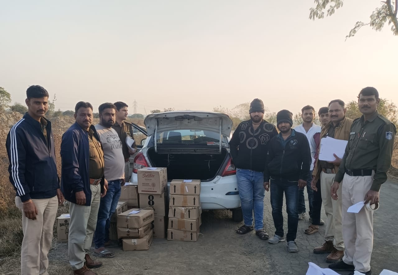 खंडवा में शराब तस्करी का भंडाफोड़: कार–बाइक रैकी से ले जाई जा रही ब्रांडेड शराब, तीन आरोपी गिरफ्तार