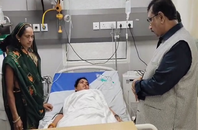 खंडवा मूर्ति विसर्जन घायलों से अस्पताल में मिले मंत्री विजय शाह,5-5 हजार रुपये के दिए चेक,कहा - सरकार आपके साथ खड़ी