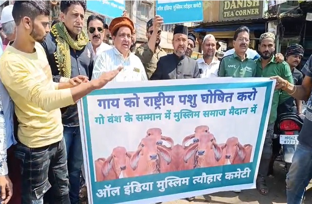 भोपाल (इजहार खान) : मध्य प्रदेश की राजधानी भोपाल में एक अलग तरह की मांग को लेकर प्रदर्शन देखने को मिला, जहां मध्य प्रदेश मुस्लिम त्योहार कमेटी ने गाय को राष्ट्रीय पशु घोषित करने की मांग उठाई। साथ ही साथ भाजपा सरकार पर निशाना साधा है।