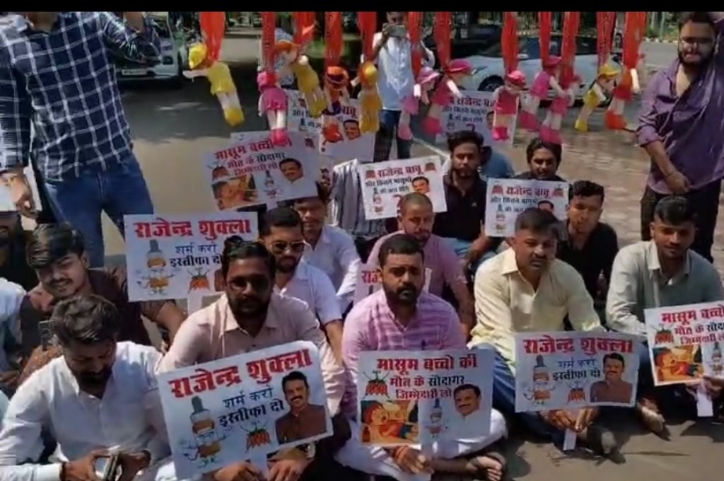 भोपाल। (इजहार खान): मध्य प्रदेश के छिंदवाड़ा जिले में जहरीले कफ सिरप से 11 मासूम बच्चों की मौत ने हड़कंप मचा दिया। इस घटना के विरोध में छात्र संगठन NSUI ने कांग्रेस कार्यालय के बाहर जोरदार प्रदर्शन किया।