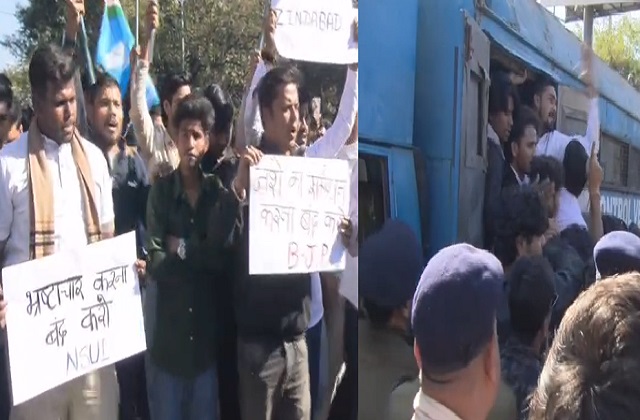 NSUI कार्यकर्ताओं का CM हाउस और मंत्री प्रतिमा के निवास का घेराव,पुलिस से झूमाझटकी,हिरासत में लिए कार्यकर्ता