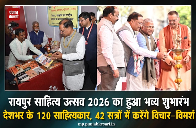 रायपुर (पुष्पेंद्र सिंह) : राजधानी रायपुर के नवा रायपुर स्थित पुरखौती मुक्तांगन परिसर में आज रायपुर साहित्य उत्सव 2026 का भव्य शुभारंभ हुआ। उद्घाटन समारोह राज्यसभा के उप सभापति हरिवंश के मुख्य आतिथ्य और मुख्यमंत्री विष्णु देव साय की अध्यक्षता में संपन्न हुआ। समारोह का आयोजन विनोद कुमार शुक्ल मंडप में किया गया, जिसमें उपमुख्यमंत्री अरुण साव, महात्मा गांधी अंतरराष्ट्रीय हिंदी विश्वविद्यालय वर्धा की कुलपति डॉ. कुमुद शर्मा तथा सुप्रसिद्ध रंगकर्मी एवं अभिनेता मनोज जोशी विशिष्ट अतिथि के रूप में उपस्थित थे। इस अवसर पर मुख्यमंत्री के मीडिया सलाहकार पंकज झा, वरिष्ठ पत्रकार अनंत विजय तथा छत्तीसगढ़ साहित्य अकादमी के अध्यक्ष शशांक शर्मा सहित अनेक गणमान्य नागरिक उपस्थित थे।