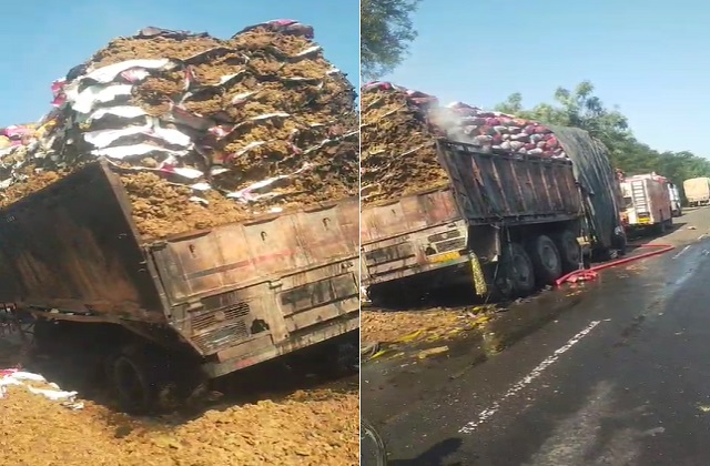 पांढुर्ना: चलते ट्रक में लगी आग, पीछे से आ रही कार भी आई चपेट में, बड़ा हादसा टला