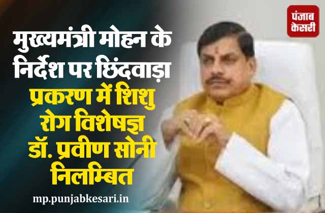 मुख्यमंत्री मोहन के निर्देश पर छिंदवाड़ा प्रकरण में शिशु रोग विशेषज्ञ डॉ. प्रवीण सोनी निलम्बित