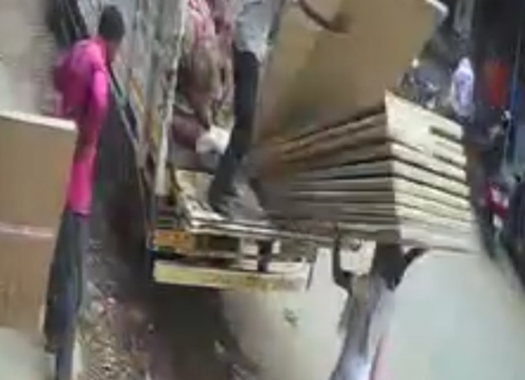 सिंगरौली में पल्लेदार पर अचानक गिरी प्लाई, गंभीर घायल – CCTV में कैद हुई खतरनाक घटना!"