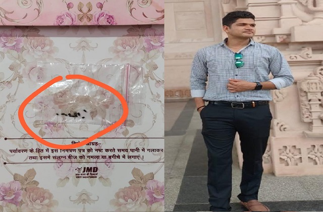डबरा (भरत रावत): अक्सर लोग अपनी शादी को यादगार बनाने के लिए कई तरह से साज सज्जा के साथ-साथ कार्ड भी आकर्षक ढंग एवं बहुत महंगा छपवाते हैं जो लोगों को आकर्षित करता है। लेकिन डबरा तहसील के करही गांव के रहने वाले मध्य प्रदेश पुलिस के जवान विनय मुद्गल पुत्र ब्रजमोहन मुद्गल ने 24 नवंबर में संपन्न होने वाले विवाह में निमंत्रण कार्ड के साथ पौधे के बीज रखकर लोगों को आमंत्रित किया, जिससे लोगों में उनकी काफी सराहना हो रही है।