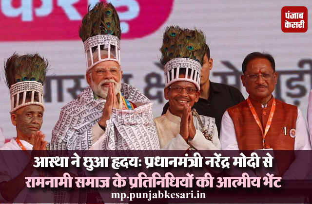 मुख्यमंत्री विष्णु देव साय ने बताया कि प्रधानमंत्री जी के रायपुर प्रवास से कुछ ही घंटे पहले मंत्रालय में रामनामी समुदाय के प्रतिनिधियों से उनकी भेंट हुई थी। उन्होंने प्रधानमंत्री जी से मिलने की अपनी प्रबल इच्छा व्यक्त की थी, जिसके अनुरूप इसके लिए आवश्यक व्यवस्थाएं सुनिश्चित की गईं।