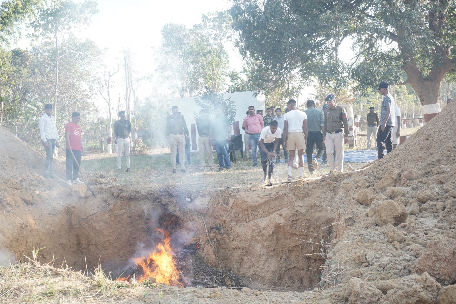 सूरजपुर पुलिस का बड़ा एक्शन: 65 लाख के नशीले पदार्थ जलाकर किए नष्ट, NDPS के 20 मामलों में जब्त ड्रग्स खत्म