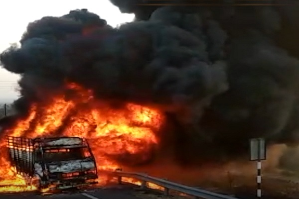 Video: NH पर ‘द बर्निंग ट्रक’, चंद सेकेंड में धू-धू कर जल उठा ट्रक