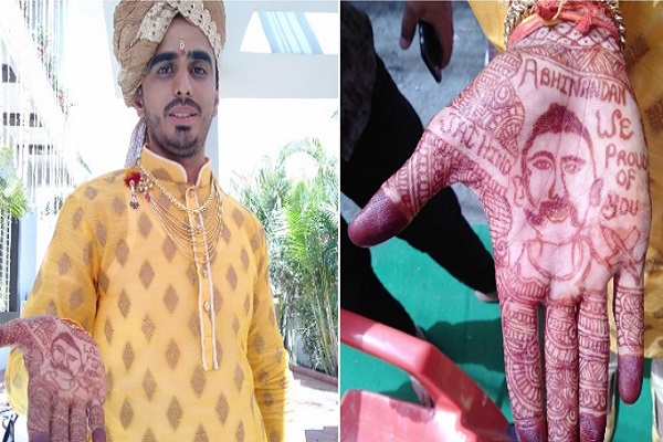 जानकारी के अनुसार, इंदौर के सांवेर रोड़ क्षेत्र के ग्राम रिंगनोदिया में रहने वाले दुग्ध व्यवसायी शुभम जाट विंग कमांडर अभिनंदन से इतने प्रभावित हुए कि उन्होंने बकायदा अपनी होने वाली जीवन संगिनी से फोन पर बात कर कहा कि वह उसके नाम की बजाय वह वीर जवान अभिनंदन की तस्वीर की मेहंदी अपने हाथों पर लगवाएंगा। दूल्हे शुभम जाट के इस फैसले को ना सिर्फ उनकी होने वाली बीबी ने माना बल्कि 10 मार्च को होने वाली शादी में शामिल होने आए रिश्तेदारों ने भी उनकी सराहना की।