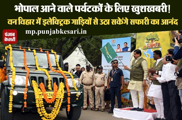 भोपाल : मध्यप्रदेश की राजधानी भोपाल आने वाले टूरिस्ट के लिए 1 अक्टूबर का दिन खास रहा। अब यहां आने वाले टूरिस्ट वन विहार में डीजल की जगह इलेक्ट्रिक गाड़ियों से सफारी का आनंद उठाएंगे। उन्हें गाड़ियों के बेवजह बजने वाले हॉर्न और शोर से मुक्ति मिलेगी। दरअसल, प्रदेश के मुख्यमंत्री डॉ. मोहन यादव ने आज वन विहार से राज्य स्तरीय वन्यजीव सप्ताह का शुभारंभ किया। उन्होंने 40 इलेक्ट्रिक वाहनों को हरी झंडी दिखाई। उन्होंने वन्यजीव संरक्षण के लिए कर्मचारियों और पर्यटन विकास समितियों को पुरस्कार प्रदान किए। इसके अलावा उन्होंने वाइल्ड लाइफ पर आधारित किताब और गिद्धों के संरक्षण पर केंद्रित रिपोर्ट का विमोचन भी किया। कार्यक्रम में 'भारत के वन्यजीव-उनका रहवास एवं आपसी संचार' विषय पर केंद्रित फोटो प्रदर्शनी का उद्घाटन भी किया गया।