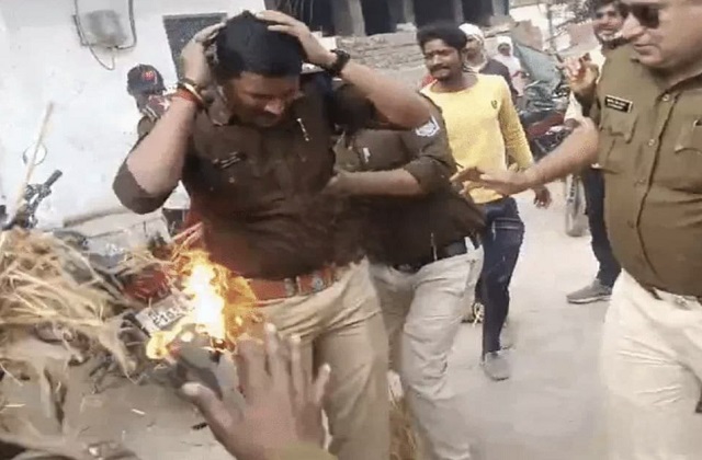 कांग्रेस का पुतला दहन बना आग का खेल! यातायात प्रभारी झुलसे, पुलिस महकमे में हड़कंप