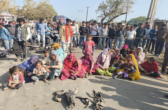 मंगलवार दोपहर तीन बजे तक तीन—तीन किलोमीटर दूरी तक वाहनों की लाइन लग गई थी। सैकड़ों वाहन जाम में फंस गए। बांछडा समुदाय के लोगों का आरोप है कि पुलिस ने सोमवार रात को गांव में आकर तीन चार गाड़ियां जला दी और एक गाय भी जल गई। गाय के जले हुए अवशेष भी ग्रामीण साथ लेकर आए है। ग्रामीण कलेक्टर और एसपी को मौके पर बुलाने पर मांग पर अड़े हुए हैं। वहीं पुलिसकर्मियों पर केस दर्ज करने की मांग कर रहे हैं।