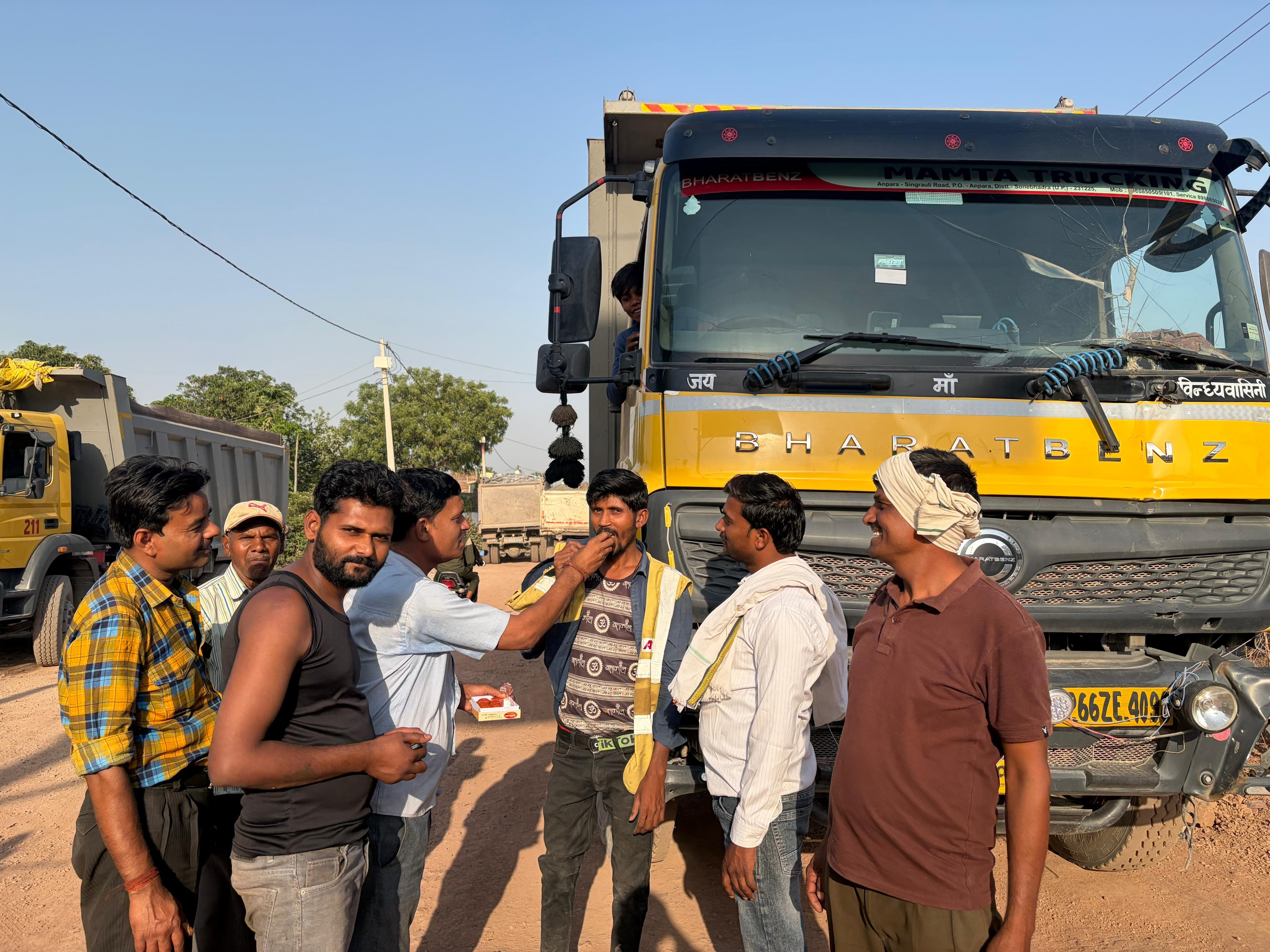 लड्डू खिलाकर ट्रक चालकों को चेतावनी: ओवरलोड ट्रकों से टूटी सड़क पर फूटा ग्रामीणों का गुस्सा