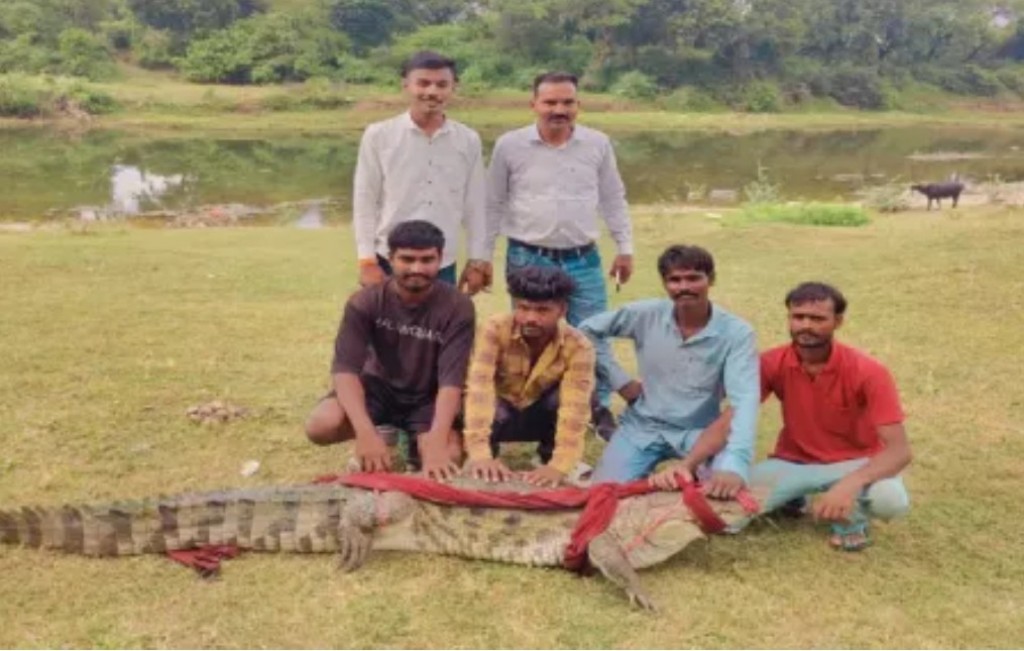 गुरुवार दोपहर सोयतकलां के पास कंठाल नदी में ग्राम देवली के युवक – विशाल, भोला, दशरथ और मुरली केवट – मछली पकड़ने गए थे। अचानक उनका पैर नदी में मौजूद मगरमच्छ पर पड़ गया। खतरा भांपकर घबराने के बजाय युवकों ने अद्भुत साहस और सूझबूझ का परिचय देते हुए मगरमच्छ को काबू कर लिया।