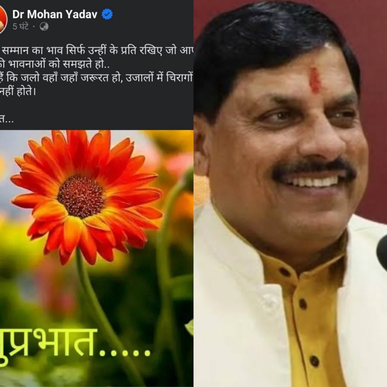 यह क्रम कई महीनों और सालों से चला आ रहा है। लेकिन इस पर कोई विशेष ध्यान नहीं दिया जाता था लेकिन अब डॉ मोहन यादव मुख्यमंत्री बन गए हैं और मंगलवार की सुबह उनका एक ऐसा विचार सामने आया है जो चर्चा का विषय बन गया है। रोज की तरह मंगलवार को भी डॉक्टर मोहन यादव ने बेहद ही सुंदर फूलों के साथ अपने चाहने वालों को पहले तो सुप्रभात लिखा और उसके बाद उन्होंने लिखा. प्रेम या सम्मान का भाव सिर्फ उन्हीं के प्रति रखिए जो आपके "मन"की भावनाओं को समझते हो..