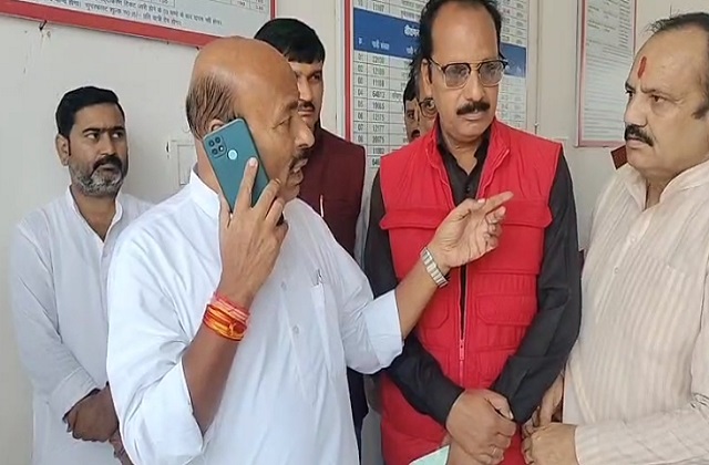 गुणवत्ताहीन कार्य को देखकर भड़के खटीक, ठेकेदार को मिलाया फोन