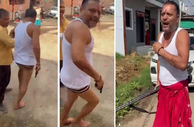 भाजपा नेता की दबगंई: हाथापाई में खुल गई धोती, चड्ढी बनियान में लहराते रहे रिवाल्वर