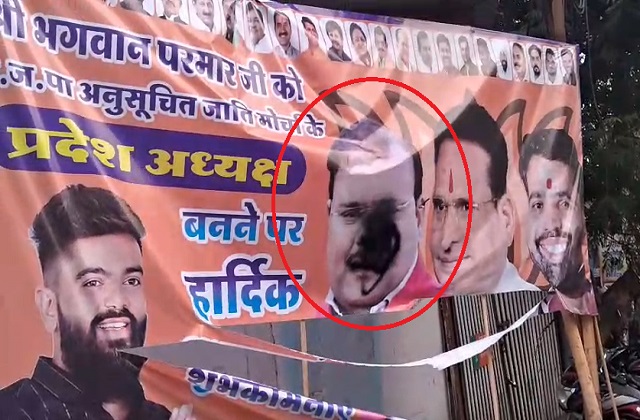 भाजपा कार्यकर्ताओं ने अपने ही अध्यक्ष के नाम पर पोती कालीख...कांग्रेस बोलीं- भाजपा के संस्कार और गोडसेवादी विचार सड़क पर आ गए