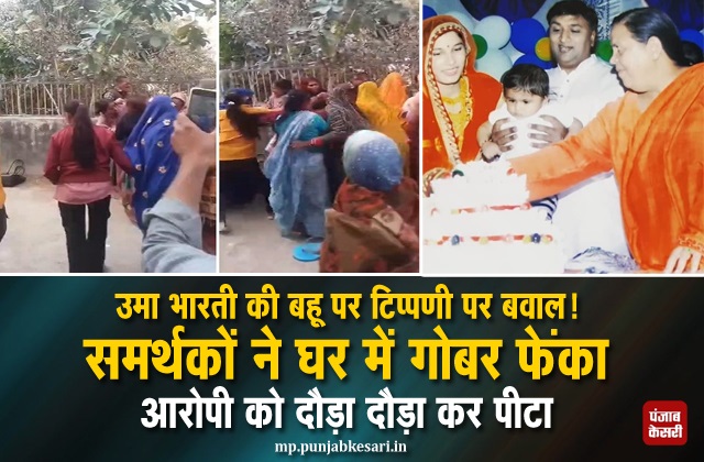 उमा भारती की बहू पर टिप्पणी पर बवाल! समर्थकों ने घर में गोबर फेंका, आरोपी को दौड़ा दौड़ा कर पीटा