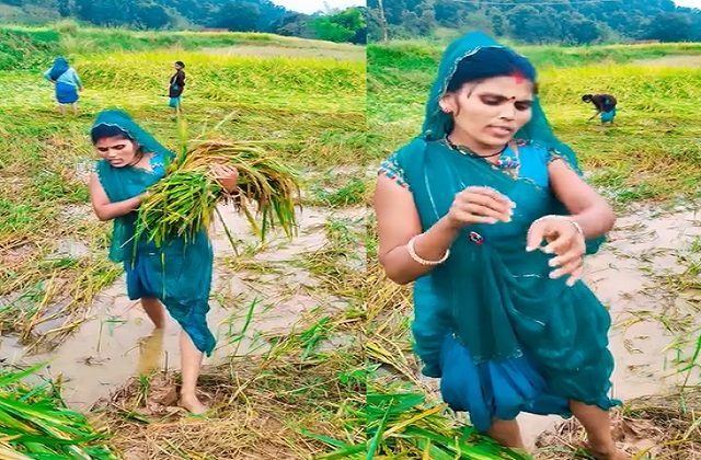 बारिश से तबाह फसल को देख छलकी किसान पीड़ा, महिला ने खेत में सड़ चुकी धान को हाथों से समेटते हुए गाया रुलाने वाला गीत