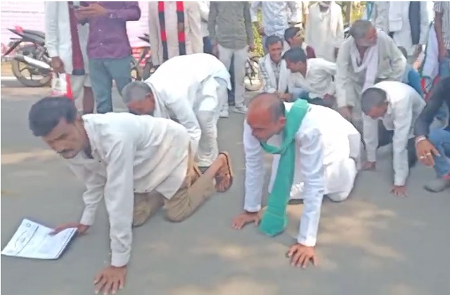 फसल के मुआवजे के लिए किसानों ने टेके घुटने! बोले- न मंत्री, न सांसद न विधायक हमारी समस्या को कोई गंभीरता से नहीं ले रहा